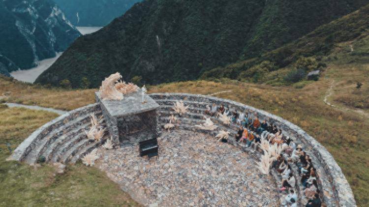 婚礼仪式在圆形剧场举行。剧场在顺草坡而下的平地上,围着的圆形看台是用石头垒成的,一层一层,起伏不定。出口面向高崖,衔着长江。